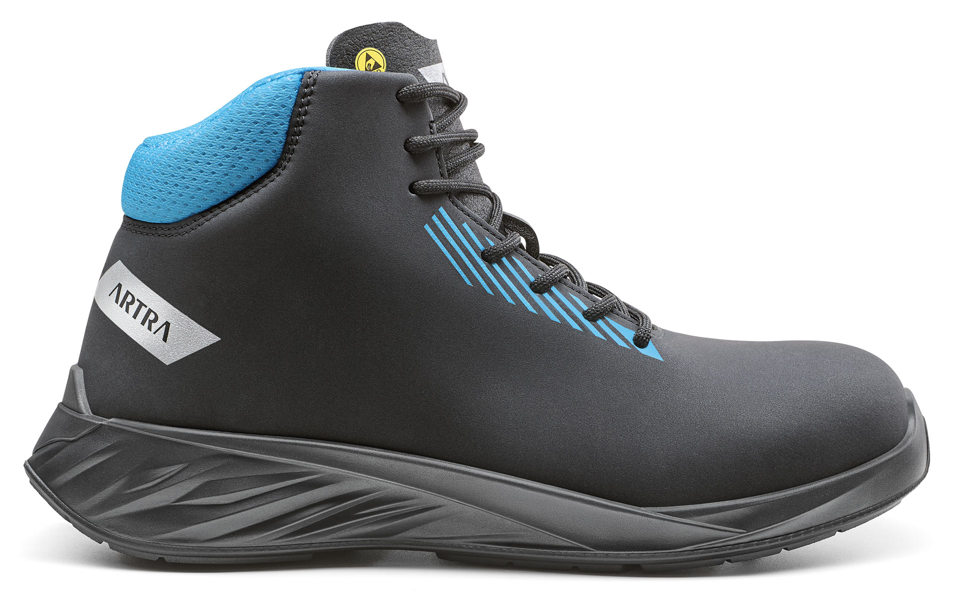 ARYON 340 619060 S3L ESD od značky ARTRA představuje moderní kotníkovou bezpečnostní obuv určenou do náročných provozů s požadavky na ESD ochranu, vegan materiály a bez kovových částí.