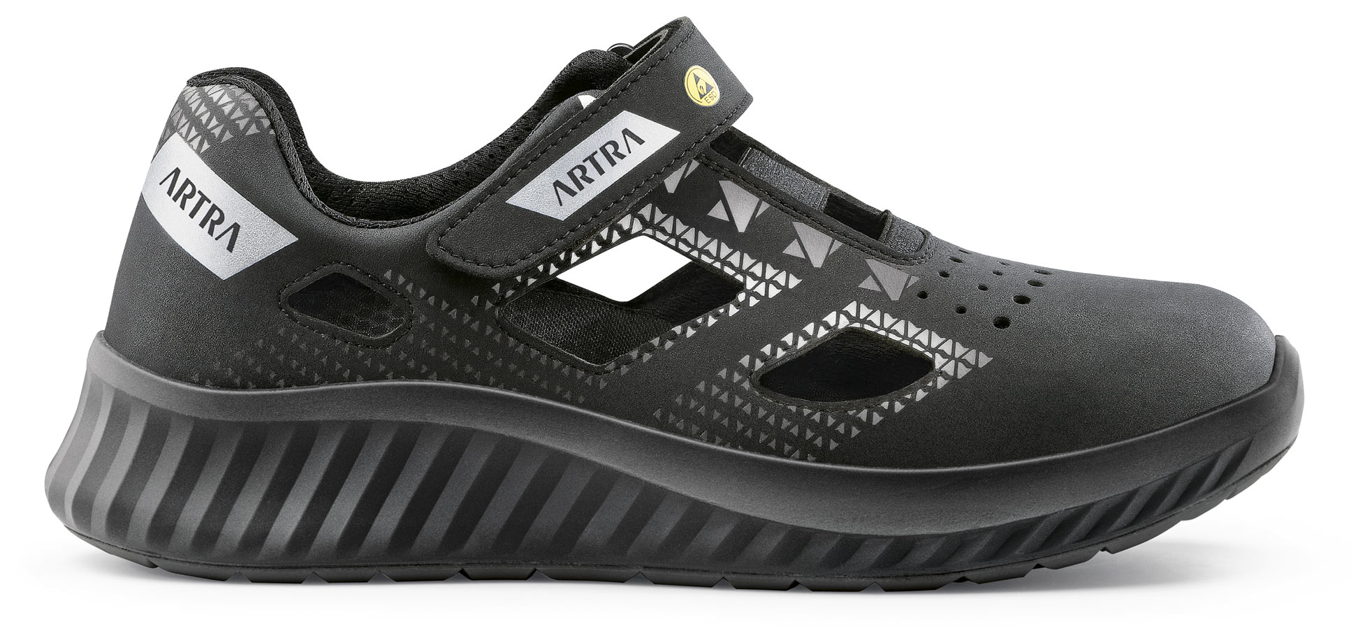 ARSO 701 616560 S1P ESD jsou černošedé bezpečnostní sandály s ESD ochranou, určené do provozů, kde je vyžadována ochrana prstů, antistatické vlastnosti a odolnost proti propíchnutí podešve.