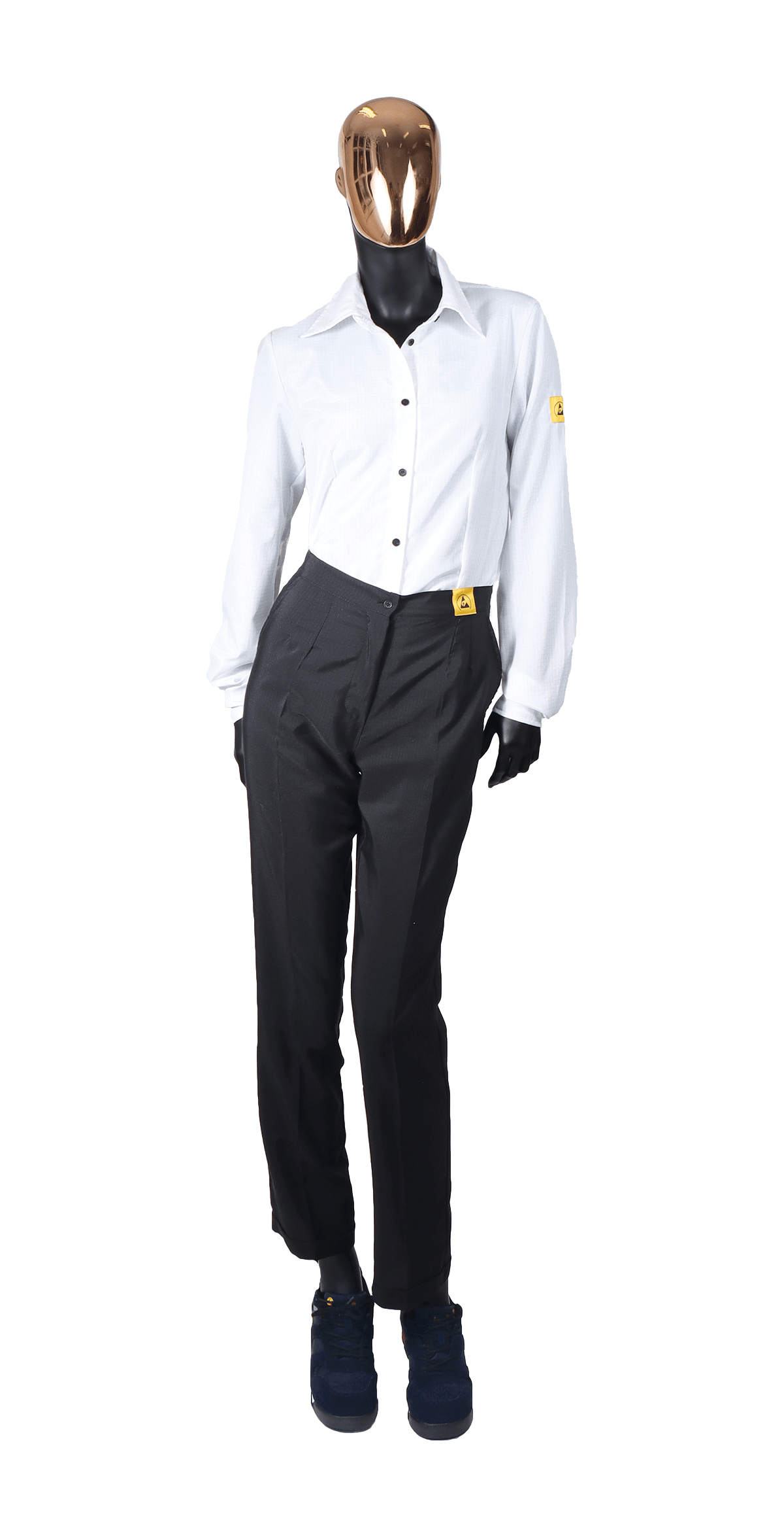 ESD manažerské dámské kalhoty. 2 postranní kapsy, rovný střih. ESD symbol.