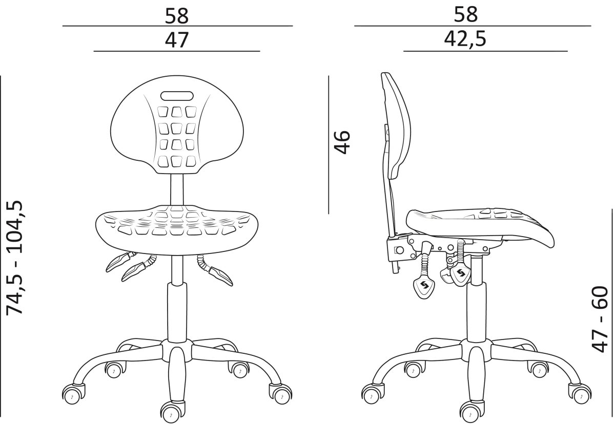 - Černý PU sedák a opěrák – odolný, snadno omyvatelný a antistatický