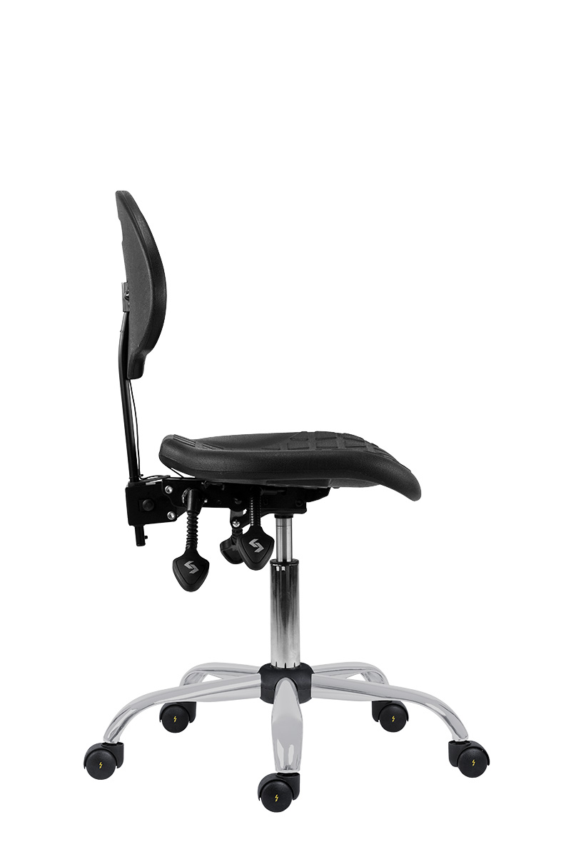 Židle je navržena speciálně pro elektronické dílny, vývojová pracoviště, laboratoře a prostředí s výskytem těkavých látek a citlivých elektronických součástek.