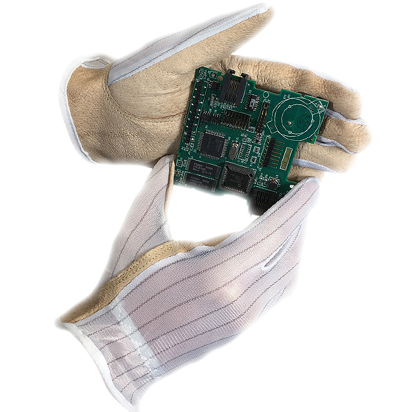 - Hřbet ruky: 98 % polyester, 2 % vodivá uhlíková vlákna po 10 mm,
