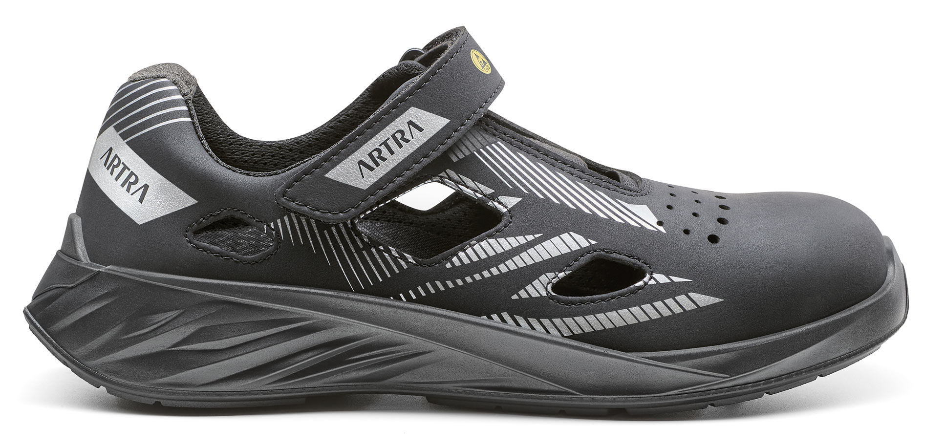 Leichte ESD-Sandalen ARTRA ARDEA 310 611460 S1 grau mit Composite-Kappe und veganem Obermaterial. Komfort, Atmungsaktivität und Sicherheit.